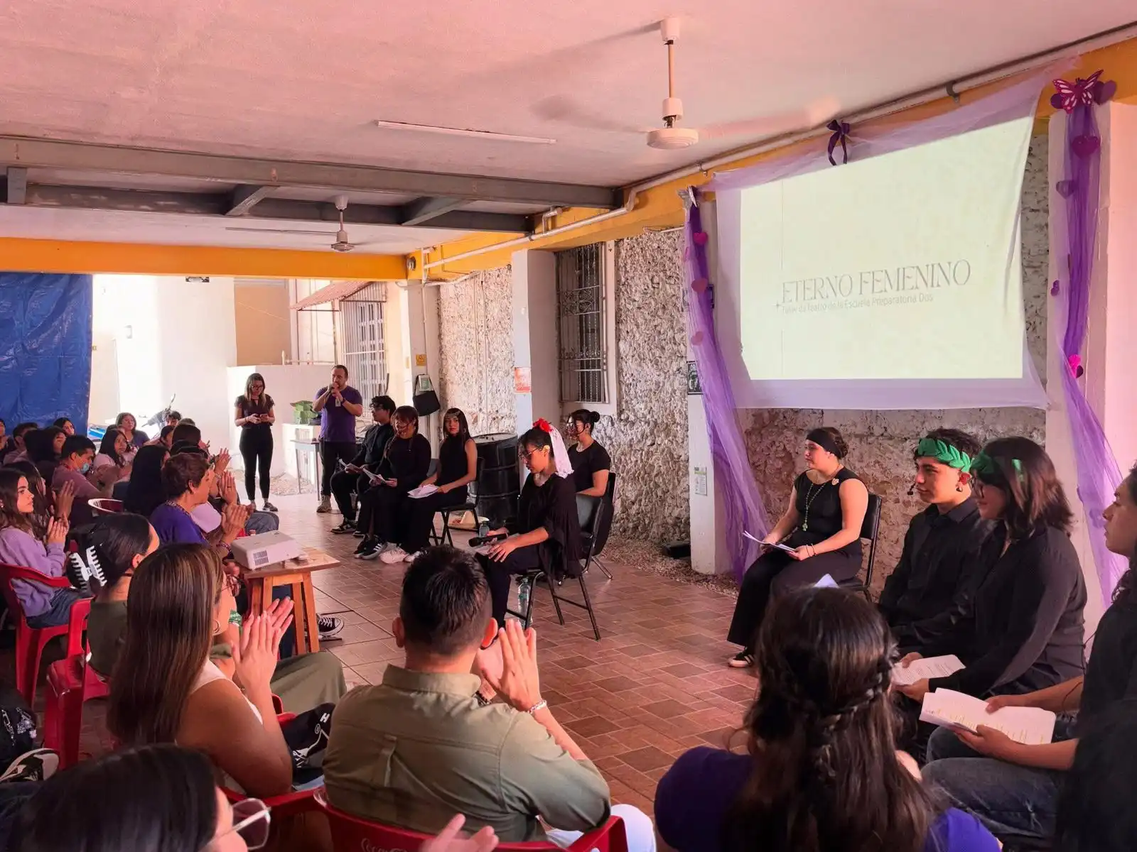 Agradecemos el apoyo de las abogadas Suleymy Fabiola Chi Medina y Nadia Gabriela Vázquez Euan; los psicólogos Ulises de Jesús Peraza Cortes y Carlos Antonio Euan Chan; así como la participación de la selección de teatro de la Preparatoria #2 de la UADY, coordinada por la Lic. Alejandra Raquel Guzmán Sánchez.